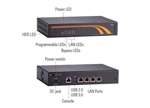 为满足大量储存需求,支援1 组mSATA与1组2.5吋SATA硬盘机固定架等储存界面,另配备1组高速高速USB 3.0埠、1组USB 2.0埠、1组串列控制埠,以及1组最高达8GB的高频宽DDR3L-1600 SO-DIMM non-ECC存储器插槽。此桌上型网络安全平台前面板配备LED指示灯,方便使用者监控电源、硬盘状态、网络通讯的传输率与LAN bypass等功能;为确保系统稳定可靠地操作,支援系统不间断的看门狗计时器 (watchdog timer),以及255秒系统重啓与7秒LAN bypass功能,另兼容主流的Windows® 7、Windows® 10、Cent OS、Ubuntu与FreeBSD等作业系统。