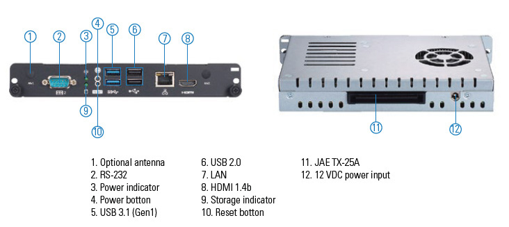 - 兼容标准Intel® OPS (开放式易插拔规格) 架构,容易安装及维护