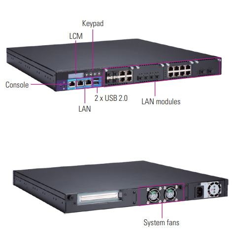 1U机架式网络应用平台NA591配备4组高容量达128GB的DDR4-2666 U-DIMM系统存储器,配备2组USB 2.0接口、1组串列控制口与1组VGA接口;内部有2组热插拔2.5寸SATA硬盘机固定架与1组mSATA插槽,满足大量储存的需求。为确保系统稳定运作,支援看门狗定时器,拥有255区段用于系统重置,与8个区段可启动LAN bypass功能;同时兼容Linux作业系统,提供管理与软件开发应用程序码,允许开发人员快速且轻松地完成开发中的解决方案。