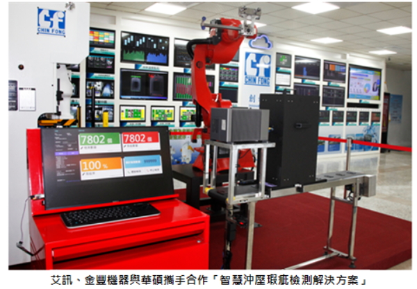 艾讯总经理黄瑞南表示:「工厂自动化逐步迈向人工智能物联网与工业4.0的新时代,海量数据分析能够改善质量、优化流程,进而提升产业再造;AI机器视觉与边缘运算扮演重要的角色。」「艾讯首次与华硕智慧物联网事业群以及冲床制造厂金丰机器共同合作,透过智慧学习模式强化全面质量系统,量身打造智慧冲压瑕疵检测解决方案,我们期许落实产业升级并放眼国际化的协同合作。」华硕人工智能视觉检测系统整合艾讯高阶AI边缘运算系统,有效率地搜集生产实时数据,让金属冲压机构件业者得以透过大数据分析;全数将数据结果反馈到操作现场,进而优化机械参数,以进行标准作业流程的持续改善,达到提高设备使用率、提升生产质量,稳定持续地维持工厂总体系统的最佳状况。